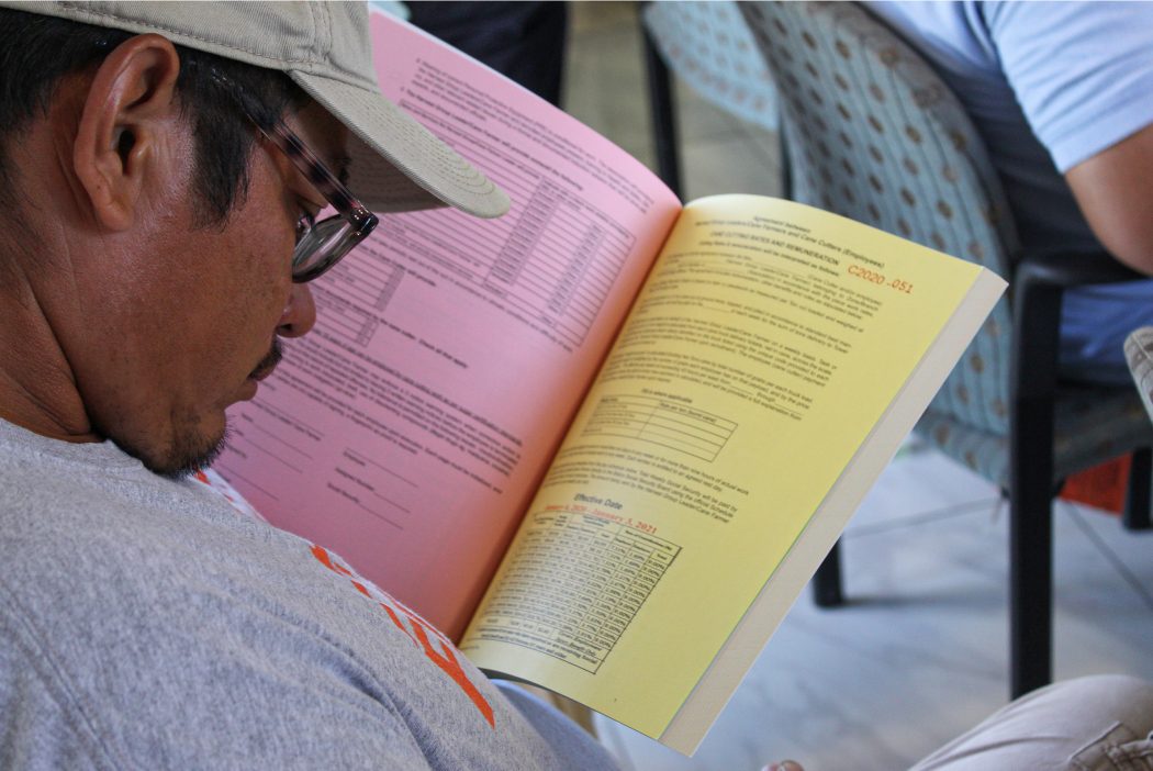 Following a series of workshops with stakeholders, consultation with Belizean Government departments of Labour and Social Security and consultation with CLAC (Latin American and Caribbean Network of Fairtrade Small Producers and Workers) on behalf of Fairtrade, contract booklets were printed and an in-field pilot scheme took place during the 2020 crop. Incorporating feedback from the pilot, contract booklets were reprinted and distributed at the beginning of the 2021, officially formalising the previously informal agreements and practices for the first time.